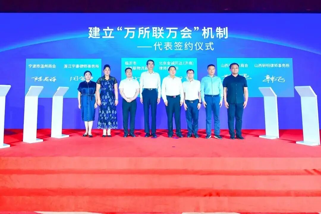 宁波市温州商会会长陈昌海,宁波市温州商会副会长、浙江宇豪律师事务所主任周含宇应邀参加此次大会,并于“万所联万会”签约仪式中,作为全国6位会长及6位律所主任代表之一上台签约。