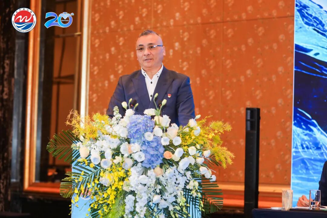 新当选会长陈昌海发表讲话,陈会长在讲话中代表第五届理事会和新一届领导班子向甬温两地党委政府和主管部门、社会各界及全体会员表达了诚挚的感谢。他表示,未来五年是深入贯彻落实党的二十届三中全会精神,全面深化改革、推动中国式现代化的关键五年,也是商会接续发展、充满希望的五年。商会将紧扣“勇当先行者、谱写新篇章”新定位、新使命,在新的起点上肩负新使命、展现新作为、焕发新气象。一是要大力弘扬新时代“四千精神”,擦亮甬温商“永远跟党走”名片;二是要全面搭好新形势桥梁纽带,引领企业勇当高质量发展排头兵;三是要积极践行社会责任,展现甬温商助富新风采。进一步加强商会自身建设、深化交流合作,推动行业创新发展、促进转型升级,优化会员服务机制、强化服务职能,开创商会事业的新局面,为实现甬温两地高质量发展做出新的更大的贡献。