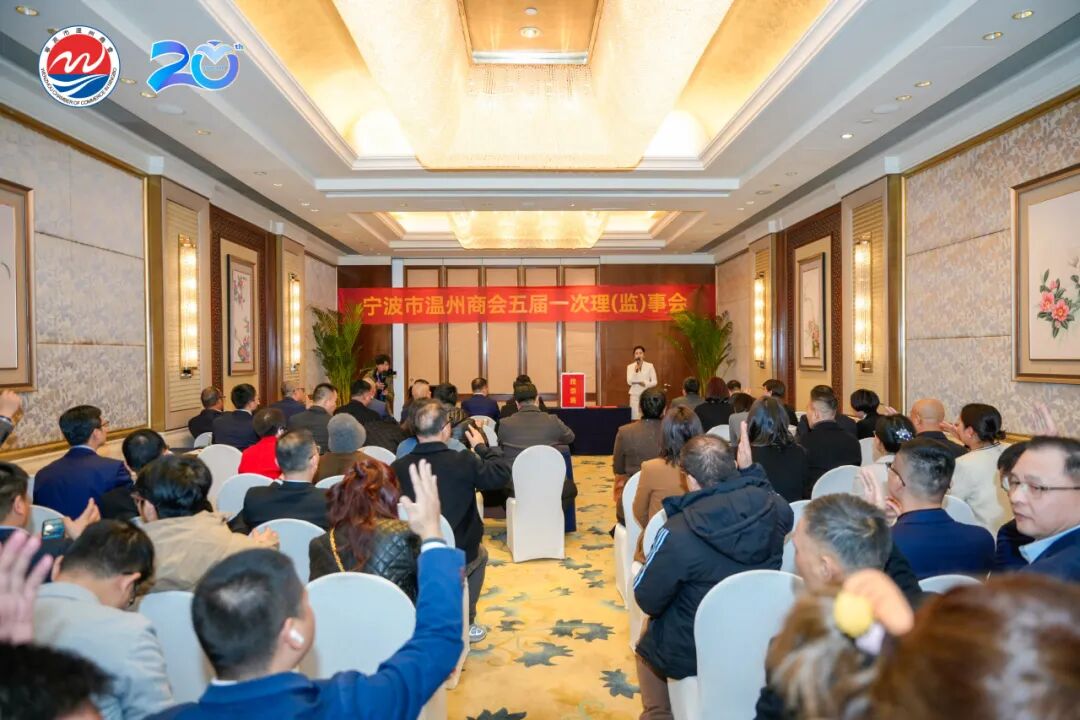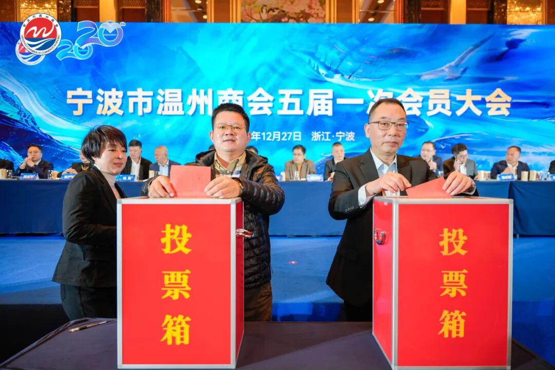 会上,联席会长陈晓东宣读《宁波市温州商会五届一次理事会、监事会选举结果》,陈昌海当选第五届会长,陈晓东、陈国成当选第五届联席会长,李巨伟当选第五届监事长,王文秀、陈鹏、曾步辉、张严兮、杨岳建、周含宇、高巧珍、陈希柱当选第五届执行会长,周王建、周强、陈中宇、黄裕赞、陈上景、高俊杰、卢海飞、陈文斌、张仁伍、朱仁、黄克游、池章、陈雪梅、曾瑞、温正达、余丽丽、杨守堆、杨建辉当选第五届常务副会长,林立楷、齐建环、杨乃九、施德胜、陈敢、林圣援、沈兴秋、陈慧黎、徐海、陈高世、徐雨阳、陈如勇、胡中希当选第五届副会长,张细钦、程胜亮当选第五届副监事长。