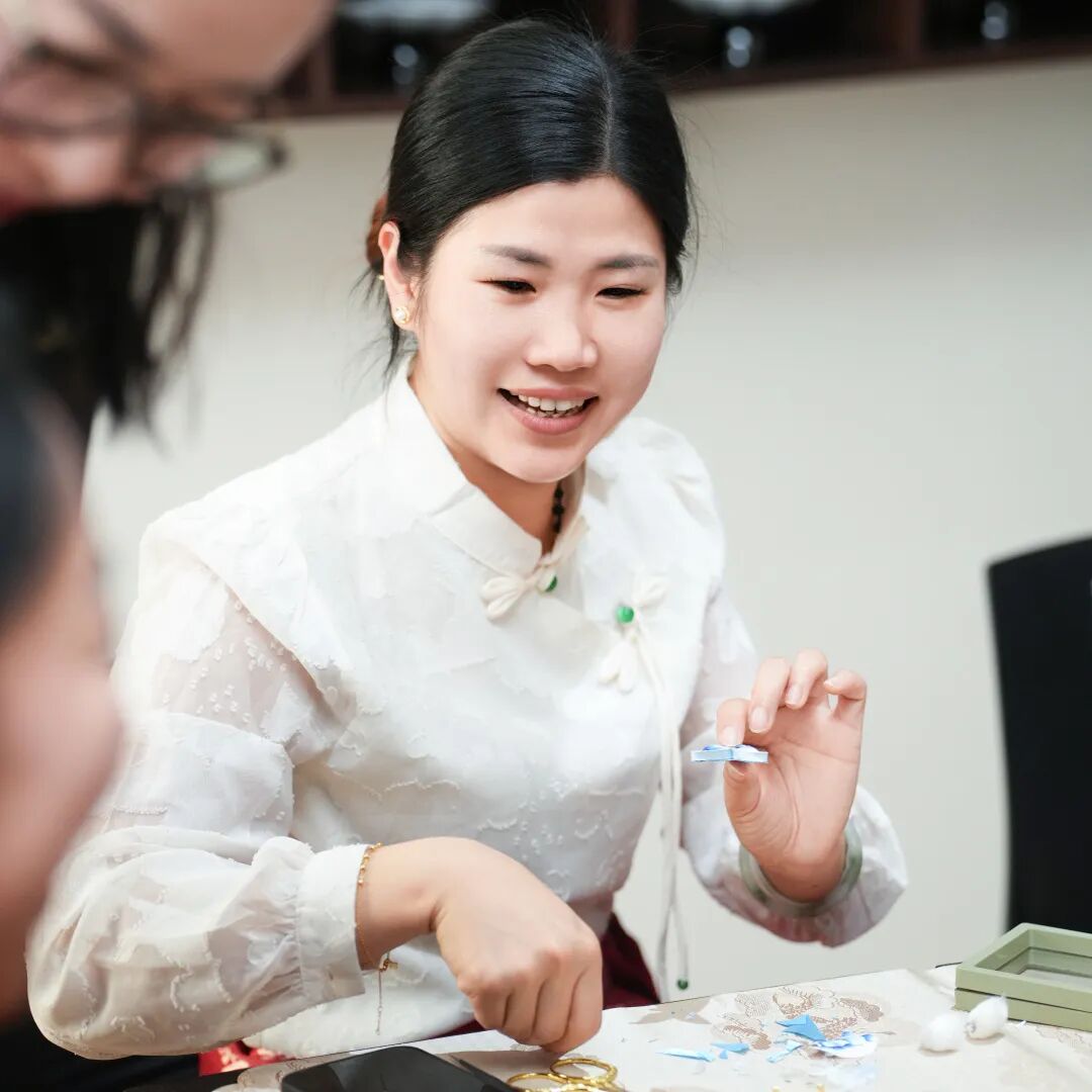 为了让与会嘉宾更加直观地感受非遗文化的魅力,本次活动特别设置了非遗盘扣制作体验环节。在专业老师的指导下,大家纷纷动手体验,于一针一线间,感受着传统手工艺的精妙与乐趣。