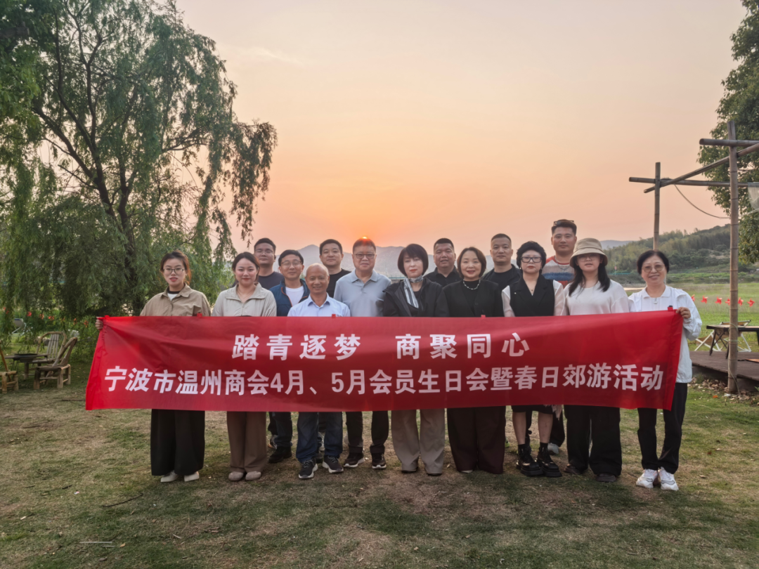 春意融融,花开正好。为增强商会会员间的团结与归属感,搭建跨行业交流平台,同时让会员们在紧张的工作之余享受大自然的美好,缓解工作压力。2025年4月28日,宁波市温州商会走进商会理事潘财忠企业——【乡遇栖野】露营基地,举办了以“踏青逐梦·商聚同心”为主题的4月、5月会员生日会暨春日郊游活动。活动由商会常务副会长卢海飞主持。