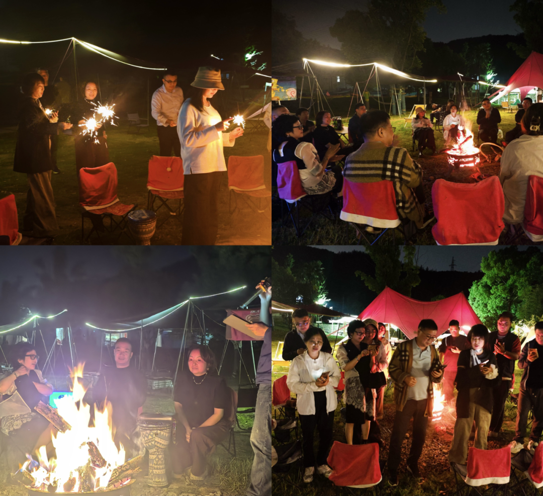 夜幕降临,“围炉夜话”环节徐徐拉开序幕。会员们围坐在篝火旁,在温暖的气氛中分享各自的故事和经历,介绍自己的企业和业务,共同探讨商业见解以及行业趋势,共商合作机会。现场还安排了趣味小游戏,友谊也在跃动的火光中愈发深厚。