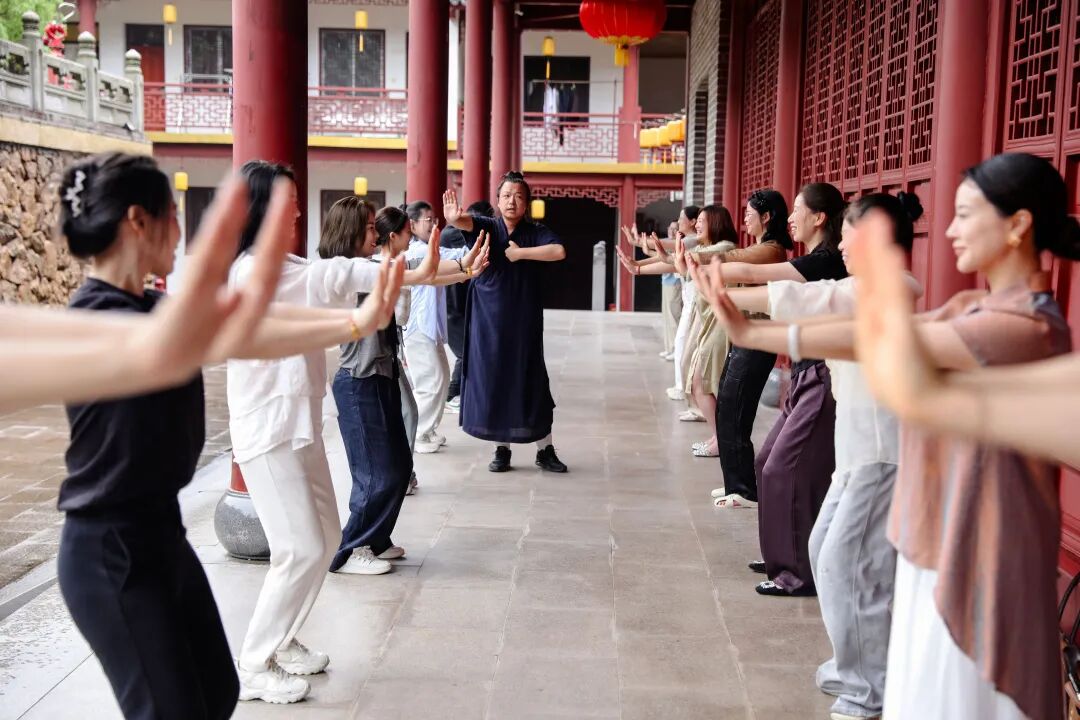 伴随着悠悠道乐,众人跟随道长舒展身姿,仿佛与天地之气相融,在刚柔并济的动作流转中,感受着千年养生智慧带来的身心洗礼。