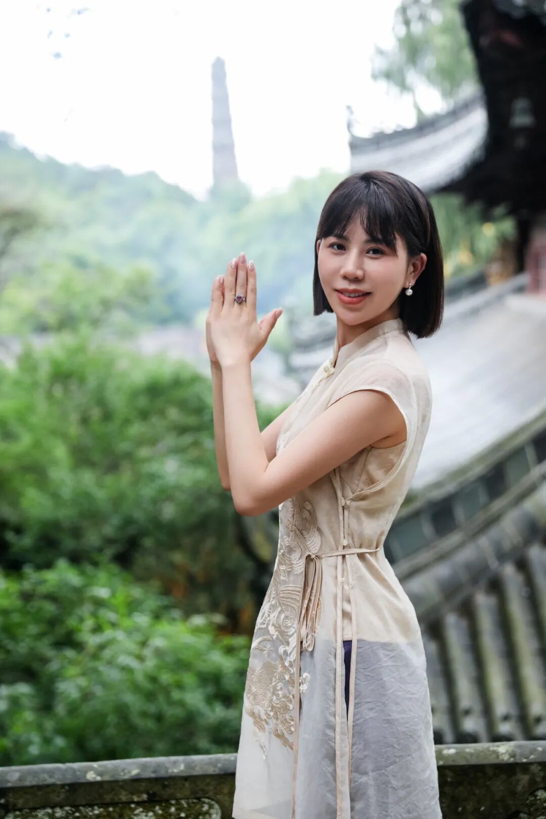 青砖黛瓦映天光,大家凝神驻足于镌刻着“隋代古刹”四字的斑驳照壁前。